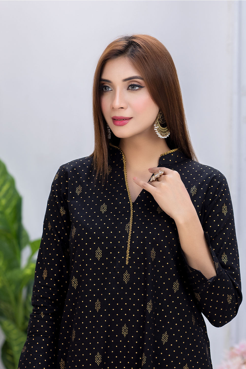2 Piece Embroidered Suit (Shirt+Trouser) Lace on daman. Straight trouser with elasticized waistband Fabric (Shirt):...