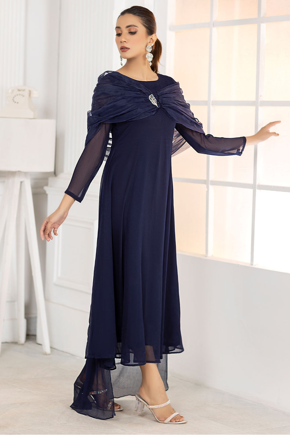 Blue crinkle chiffon maxi. Saperate organza upper. Embellished motif on organza upper. Length from front:...
