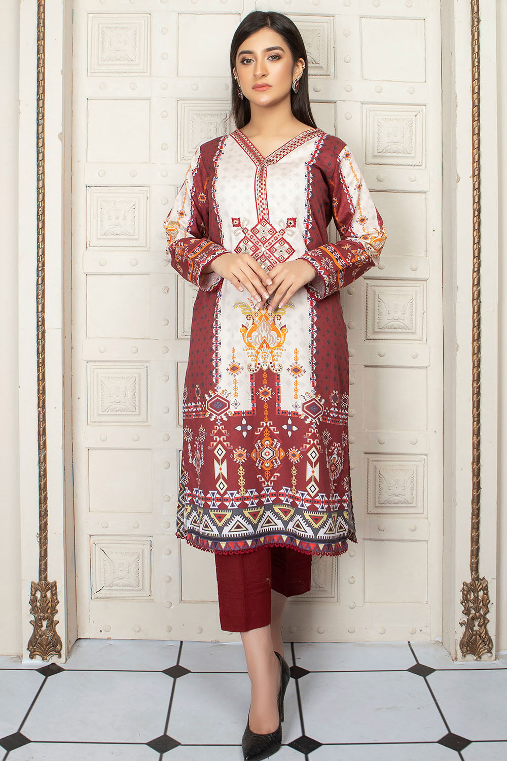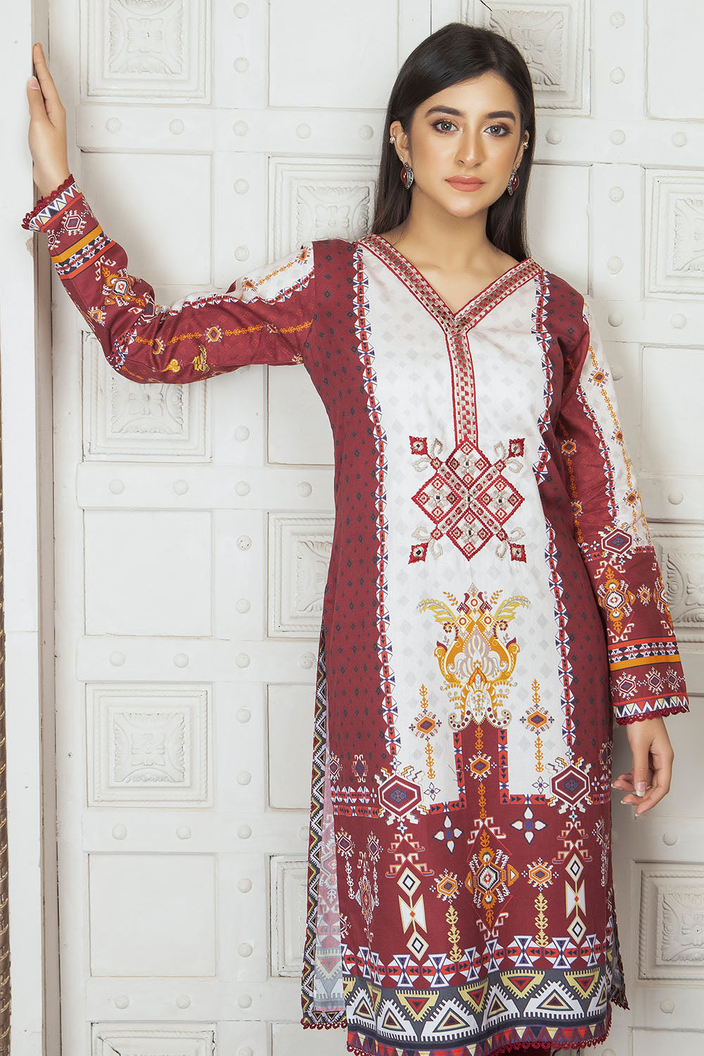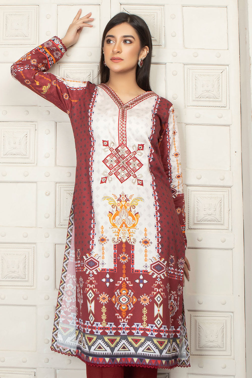 - Shirt: Embroidered dhanak digital print shirt. front embroidery with lace on sleeves and daman