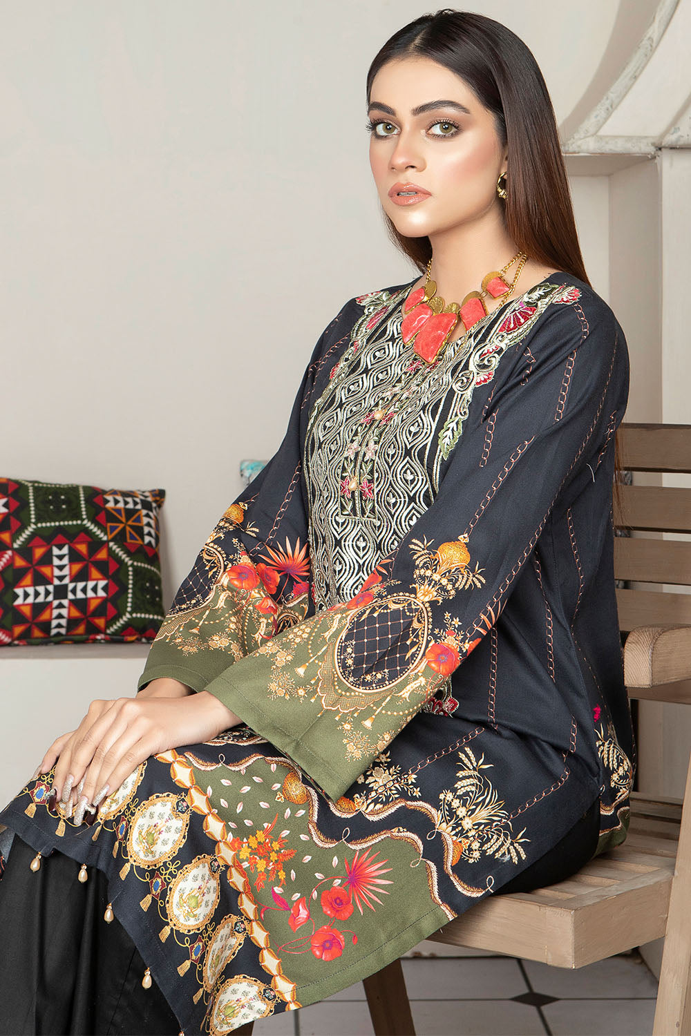- Embroidered digital printed dhanak shirt with hand made tassels on border.