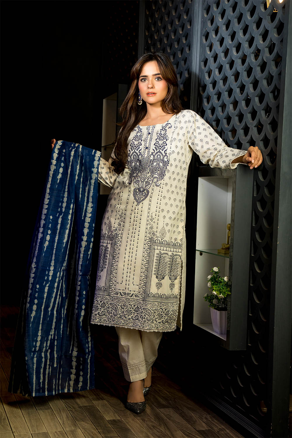 - Trouser: cotton lawn trouser with pintex on border.