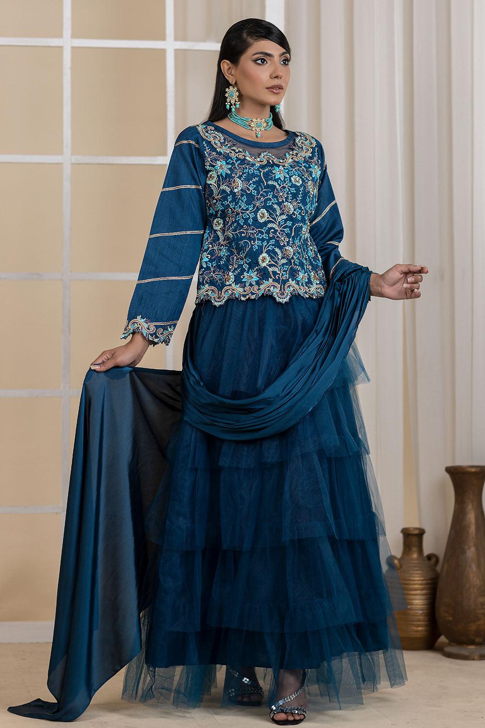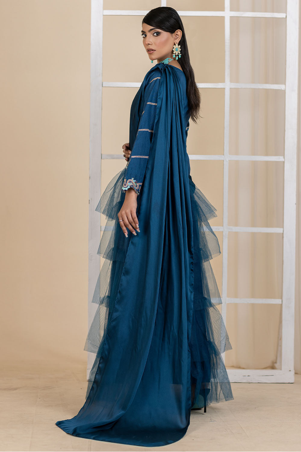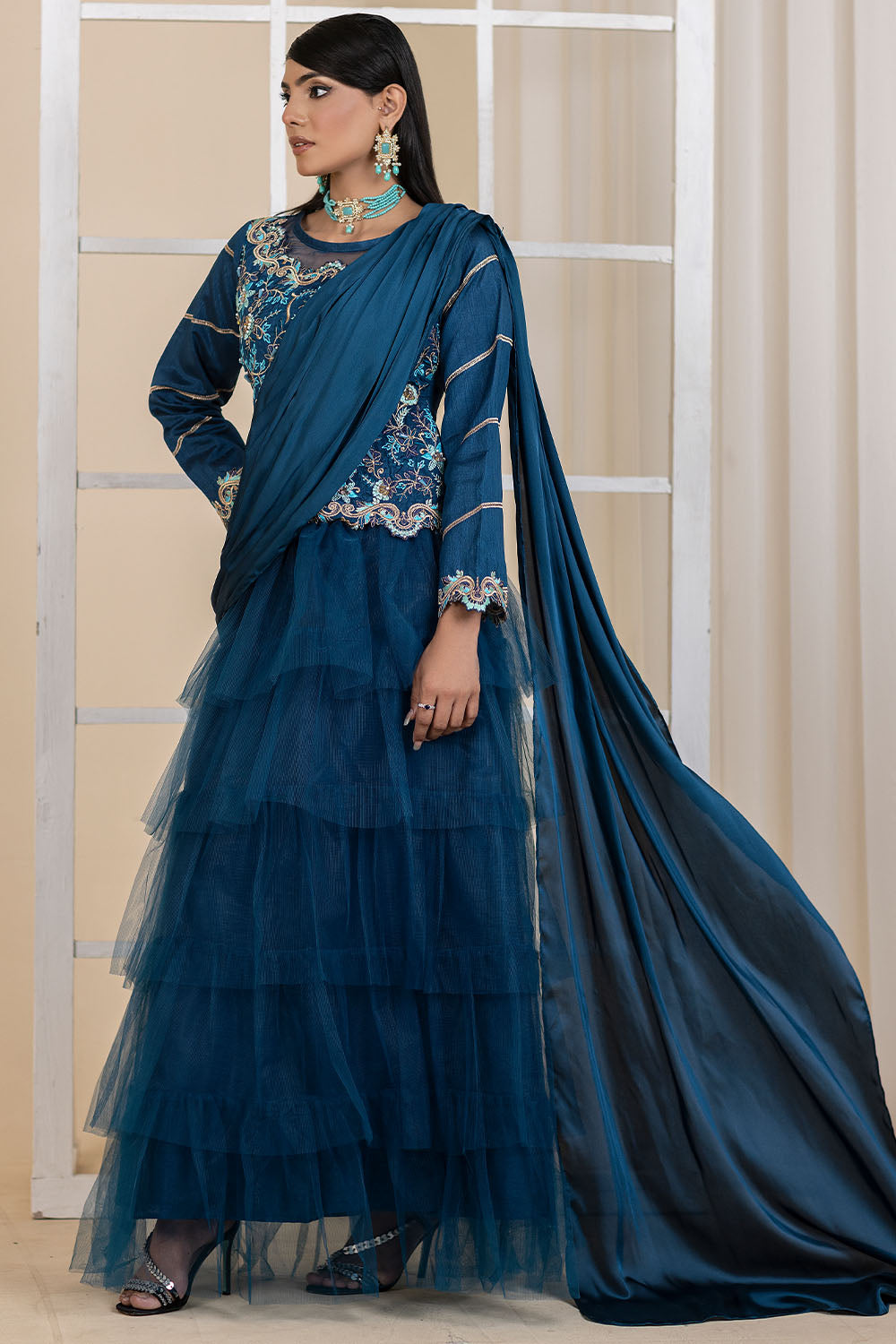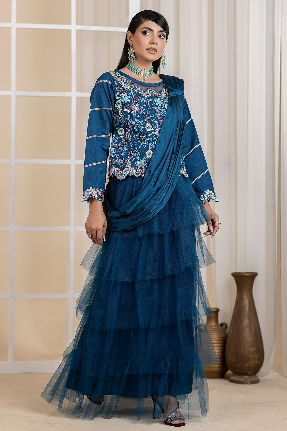 - Blouse: Thread and sequence embroidered raw silk blouse adorned with peals, stones and crystals. Stylish organza patched neckline and cut work at blouse border. cut work and embroidered sleeves border styled [with gotta lace lines.
