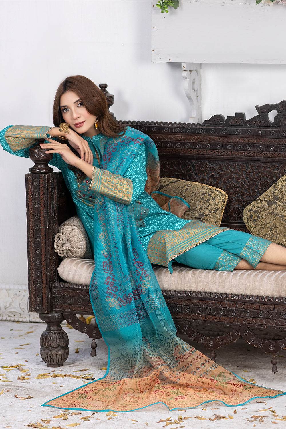 - Screen printed linen shirt with mirror embroidered neckline. Hand made buttons on neckline. lacing on sleeves and border.